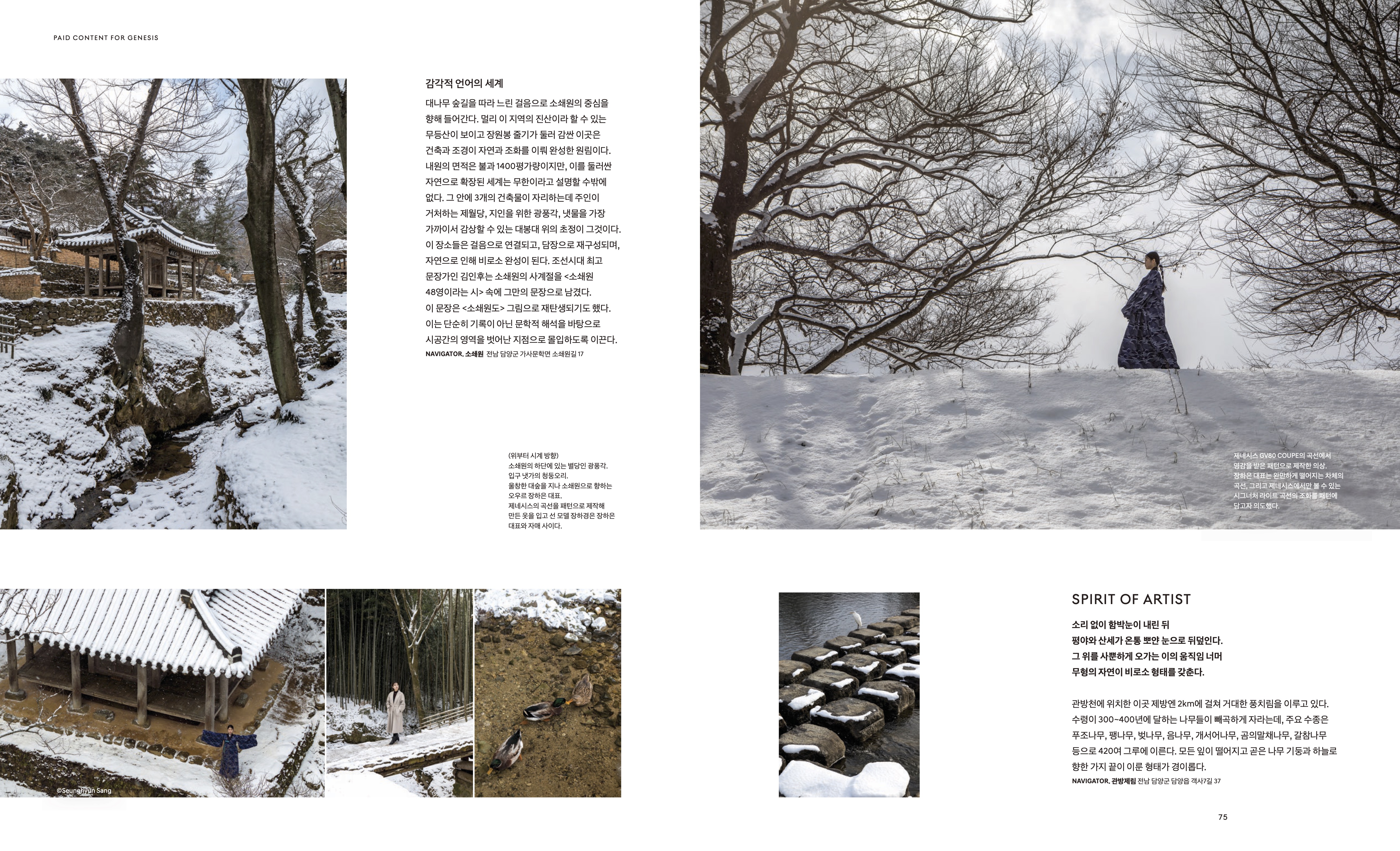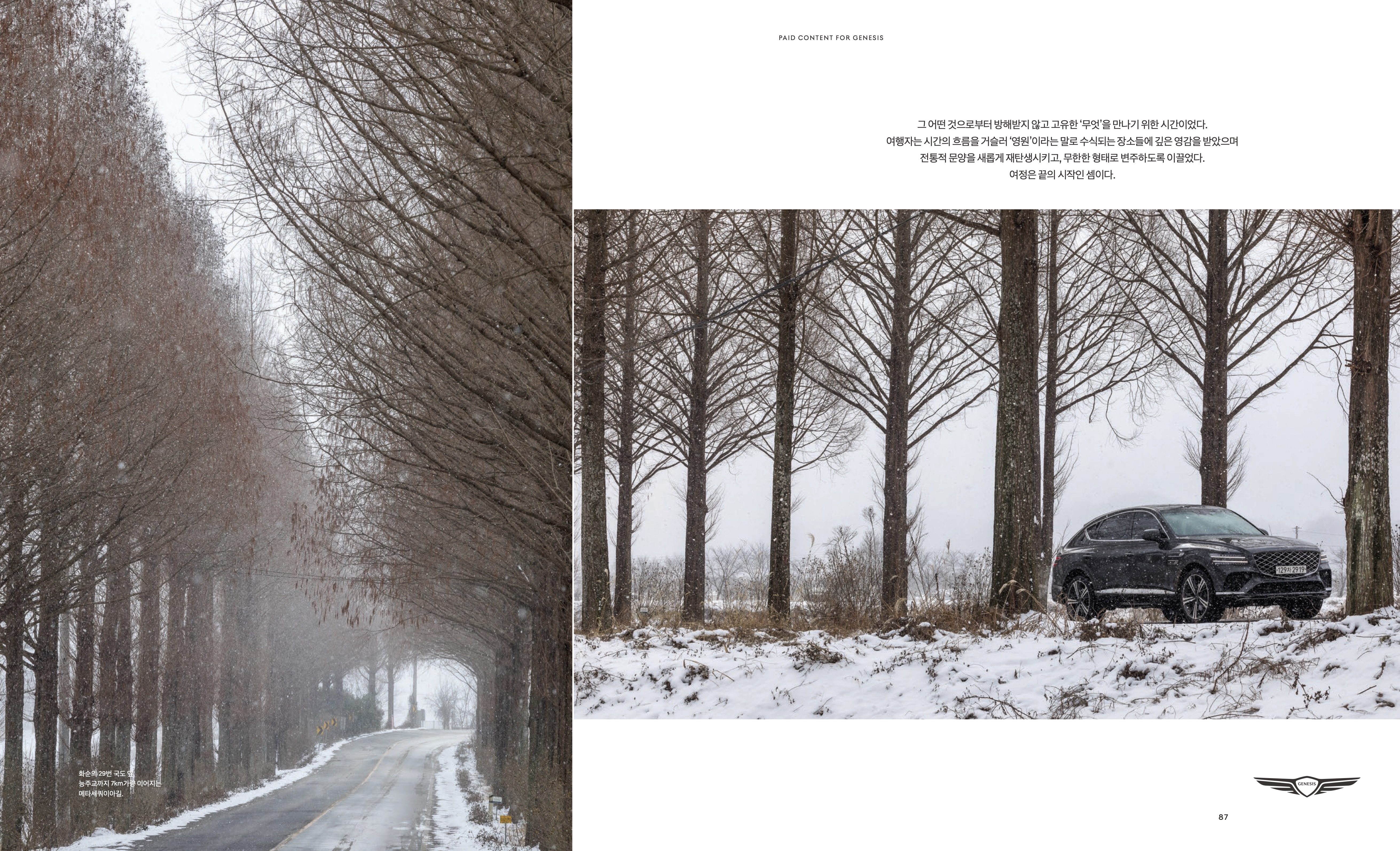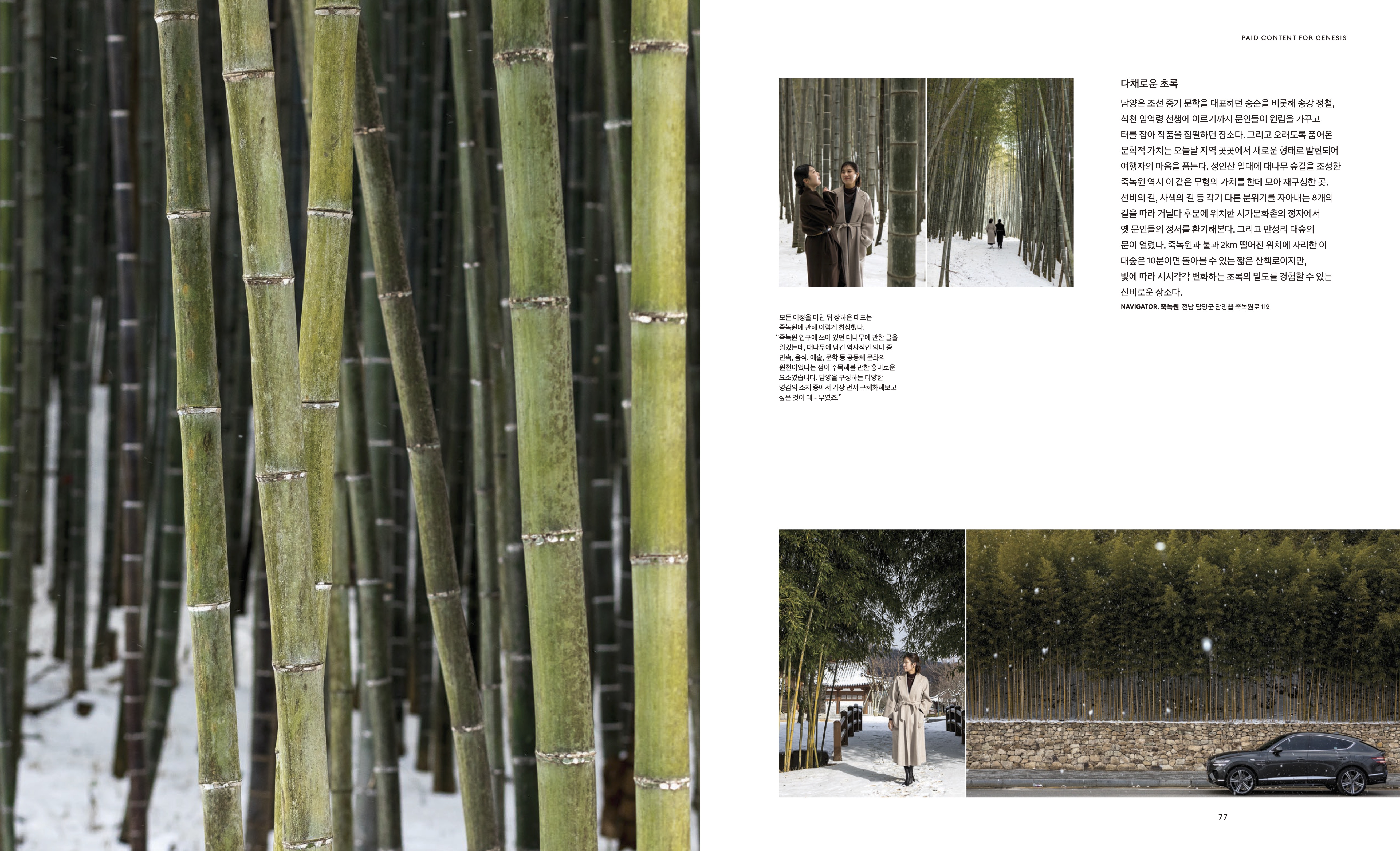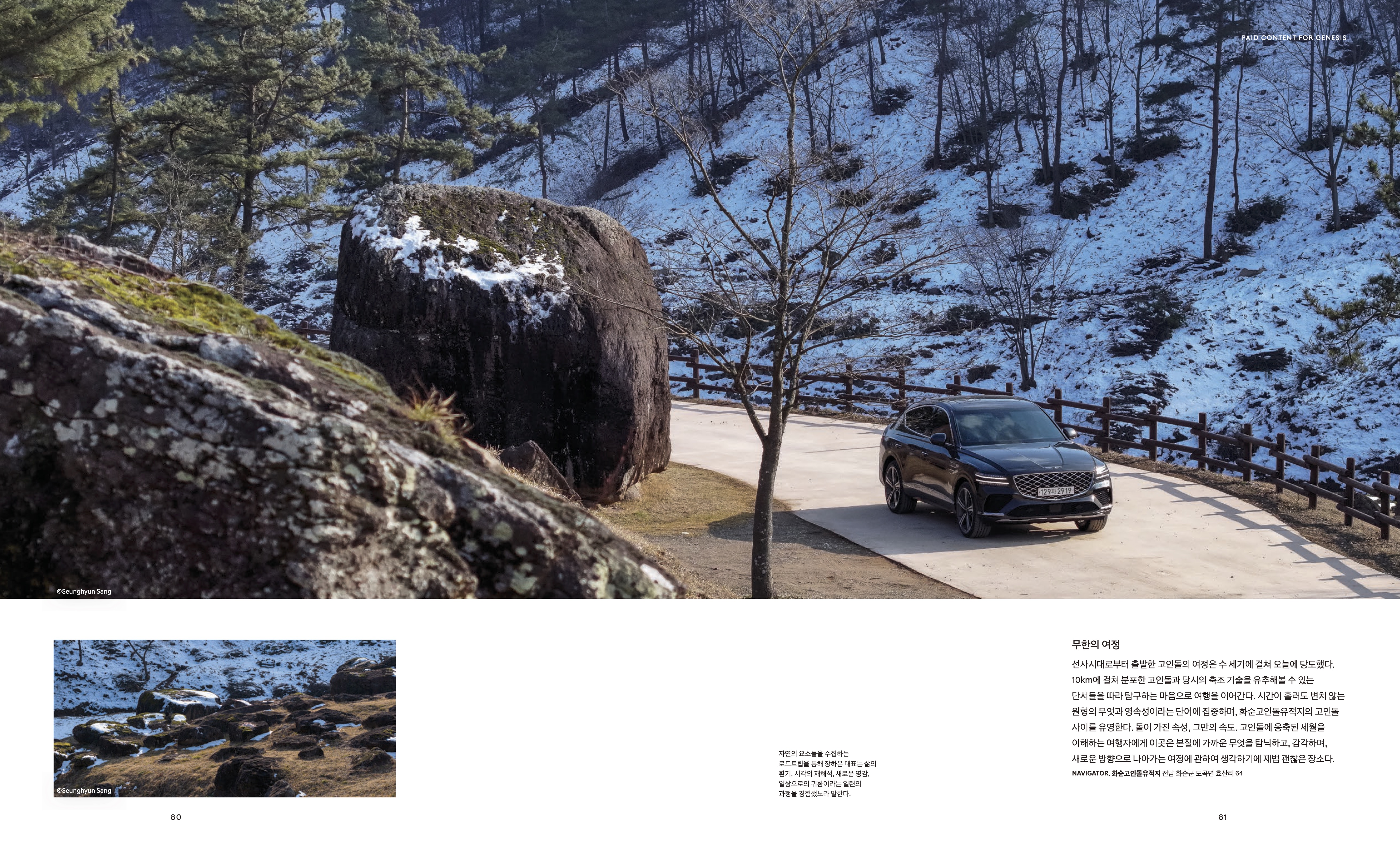 Designer Haeun Jang of OUWR, following her participation in the Genesis GV80 COUPE launch film, joined the Genesis Roadtrip feature in the March 2024 issue of National Geographic Traveler magazine. We are delighted to share the shining moments of nature through the timeless essence of tradition, alongside the Genesis GV80 Coupe.