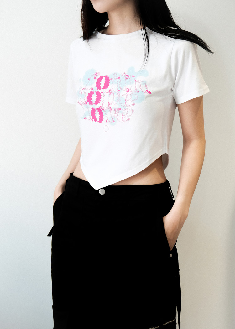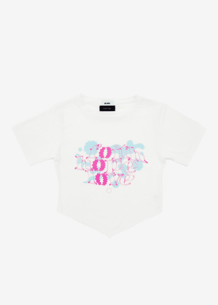 - As a collaborative piece between OUWR and ROYROY SEOUL, this is a cutting crop top featuring ROYROY SEOUL's slogan combined with OUWR's pattern printed in digital printing technique.
