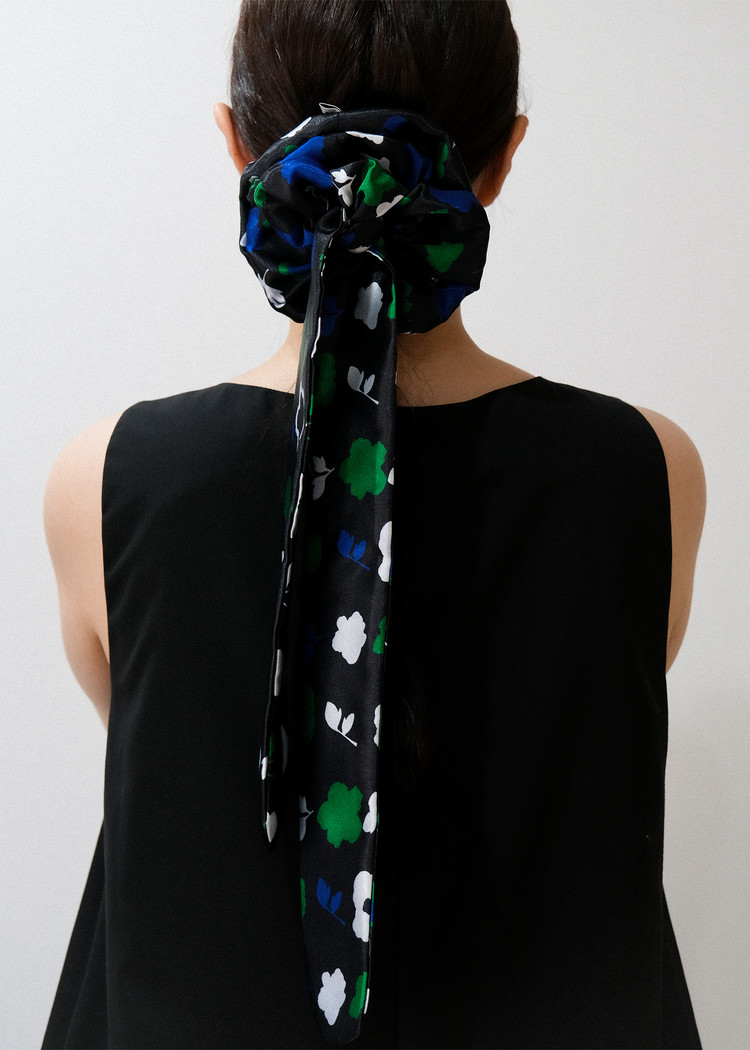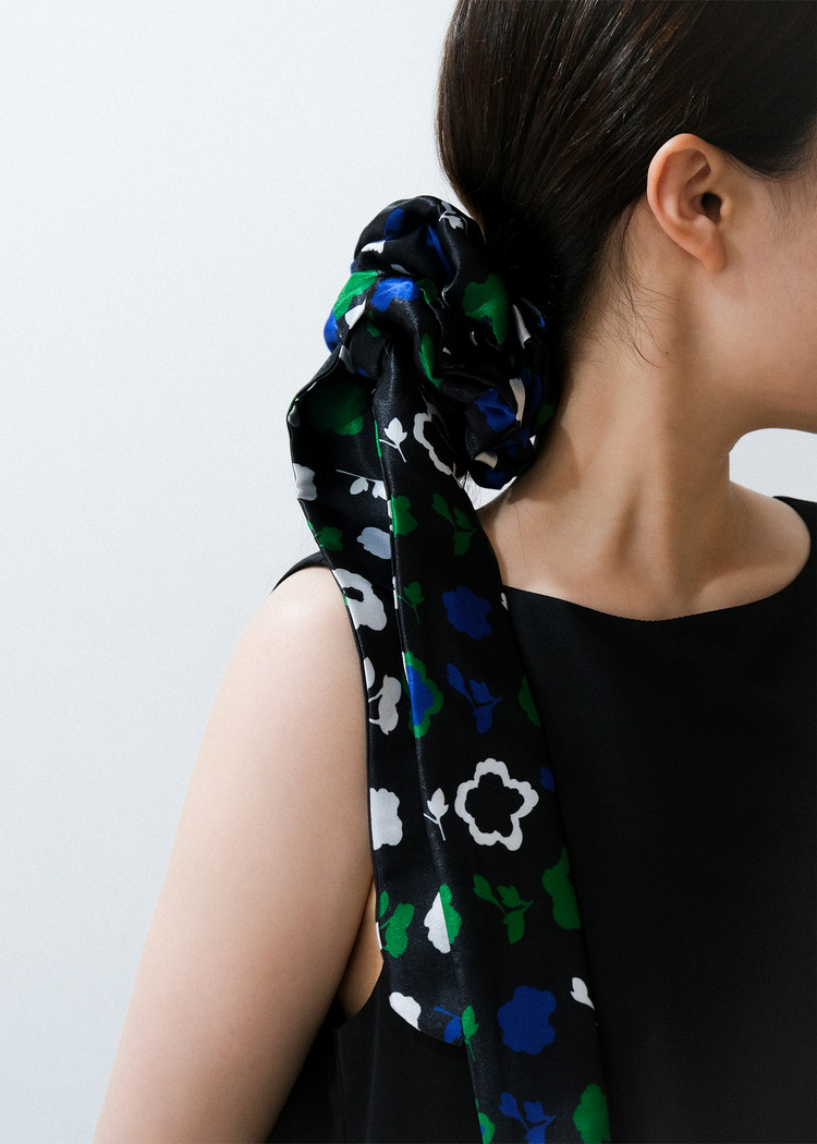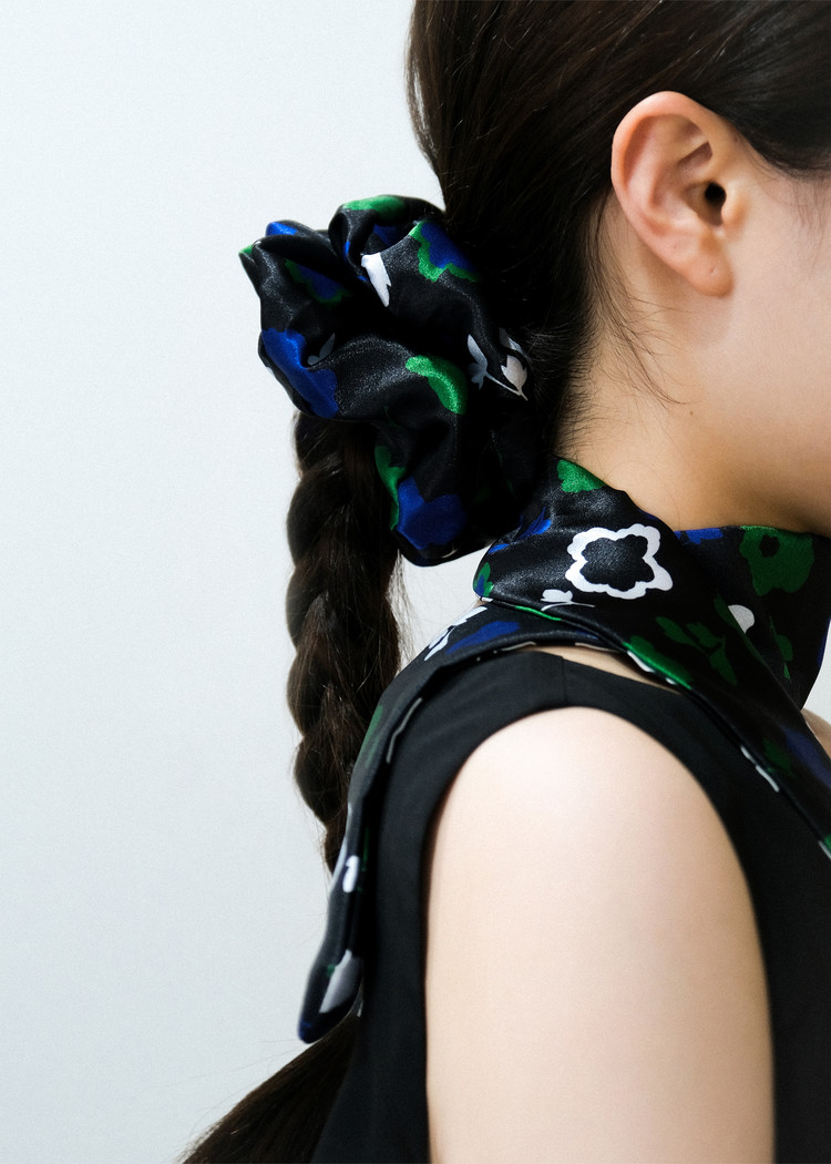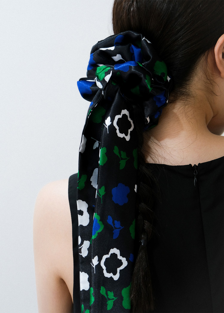 - The scrunchie can be styled alone or tied as a daengi knot. The daengi can be worn as a scarf around the neck, used to tie a bag strap, and or styled in various ways.