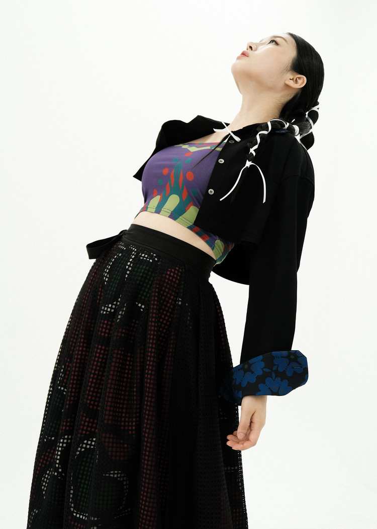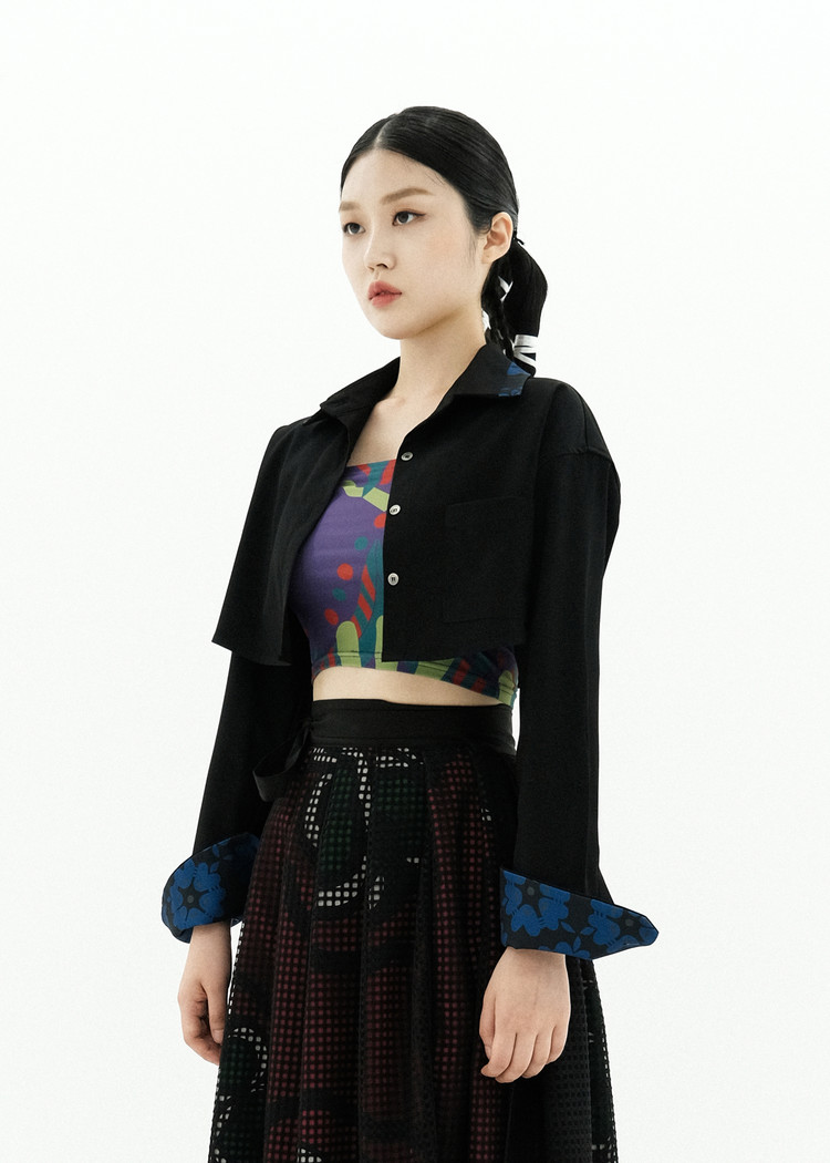 - [GULEUM GGOT] pattern printed on the outer layer reinterprets the vibrant "Dancheong" decorations, subtly hidden within traditional tiled architecture yet possessing a strong presence, as flowers blooming within the clouds.