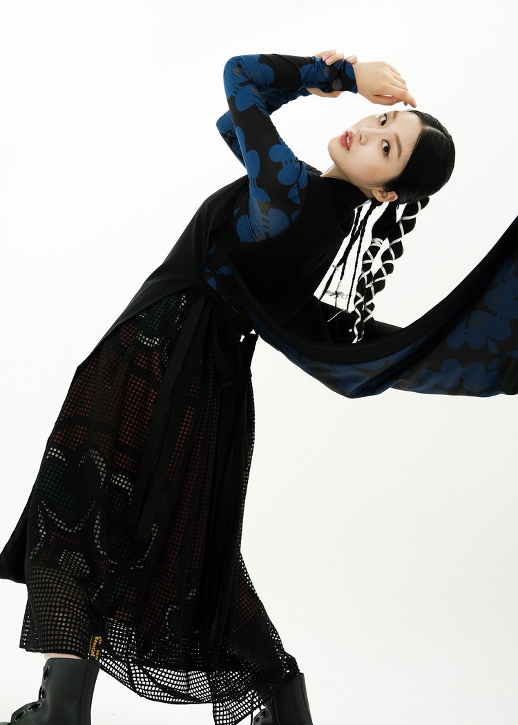 - This is a long-sleeved top featuring a bold print of OUWR’s P4 [YEONHWA] pattern.
