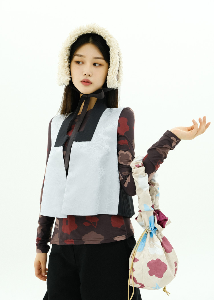- [GULEUM GGOT] pattern reinterprets the vibrant "Dancheong" decorations, subtly hidden within traditional tiled architecture yet possessing a strong presence, as flowers blooming within the clouds.