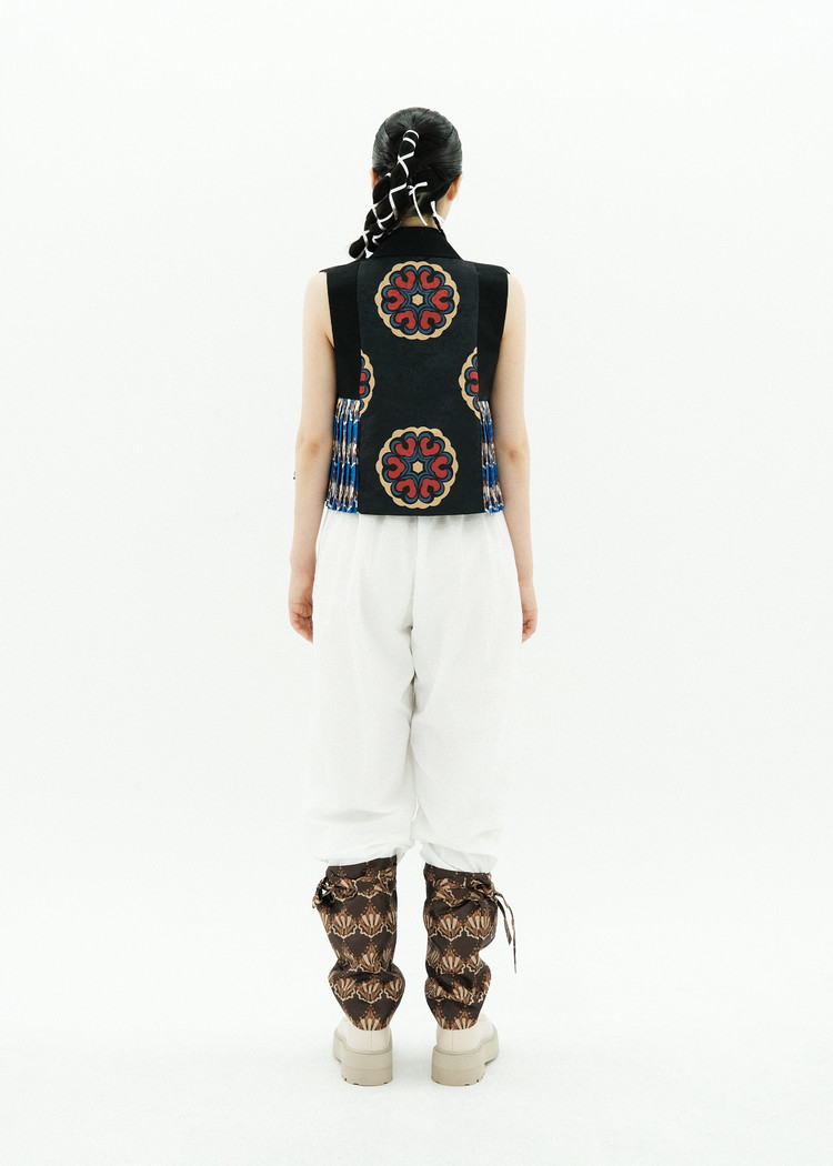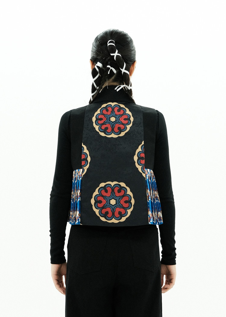 - [CHEOMA] pattern is a reinterpretation of the architectural term Cheoma (檐牙), referring to the lower part of the tiled roof in traditional Korean architecture, where the rafters extend beyond the columns.