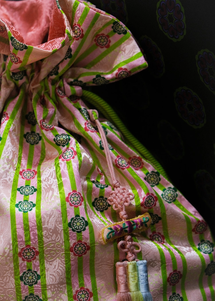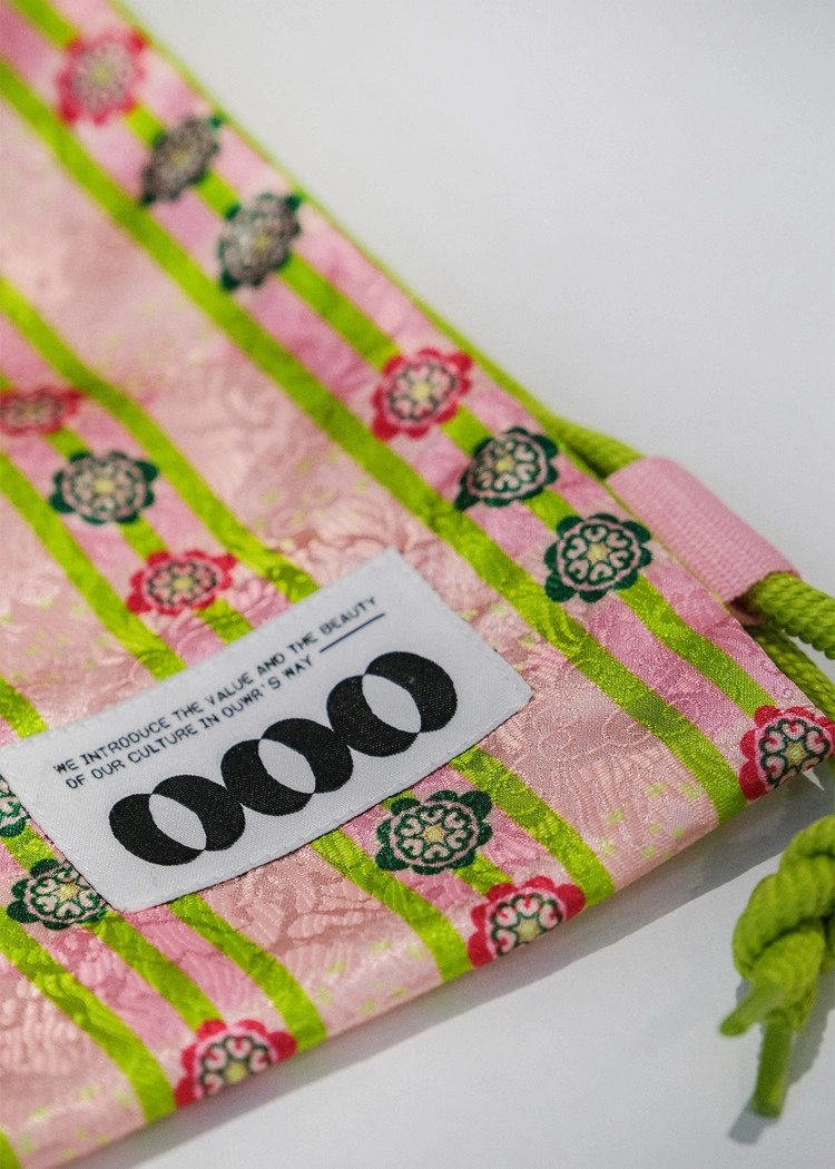 - The Bok Backpack is inspired by the Bokjumeoni (fortune pouch), traditionally carried to attract good fortune, and features OUWR’s [P12 Ggot Norigae] pattern.