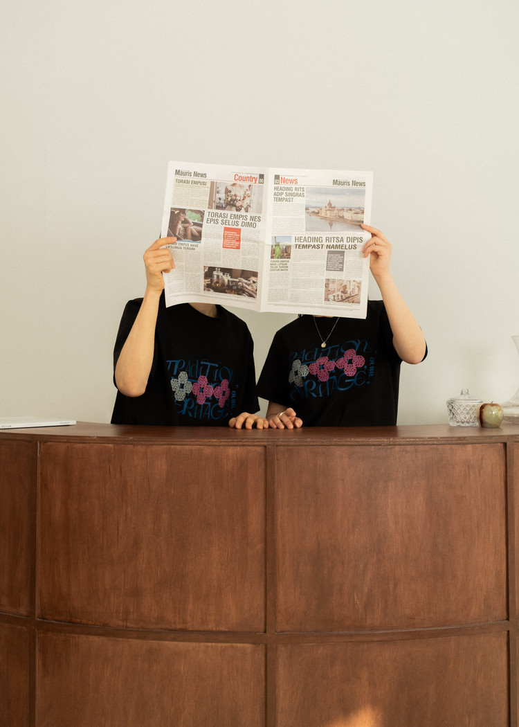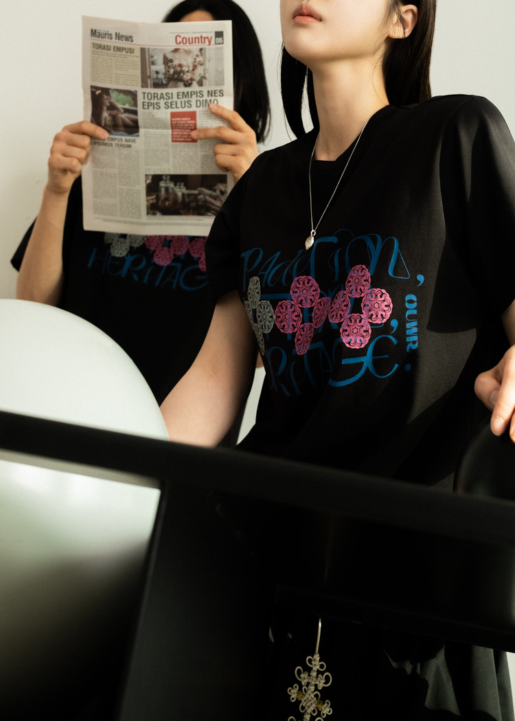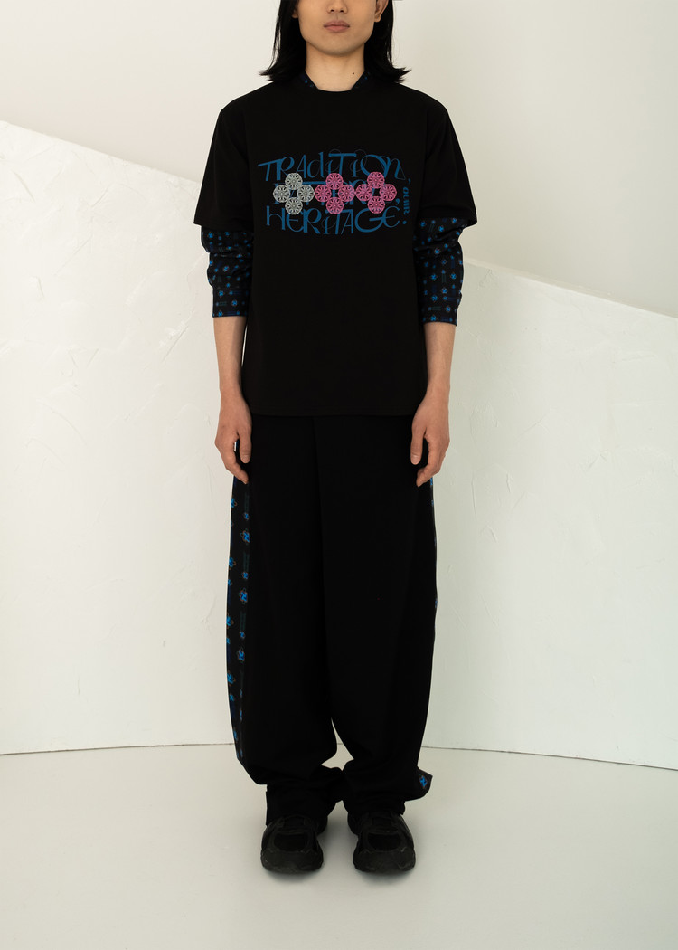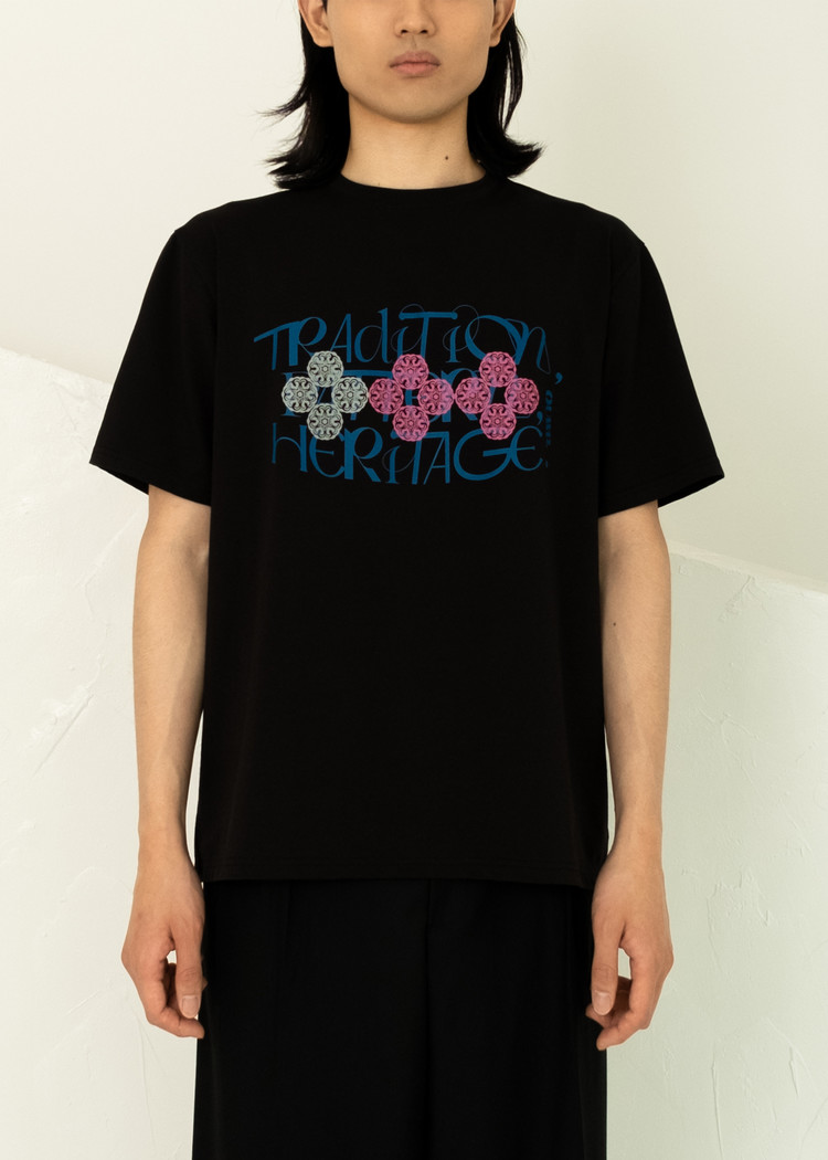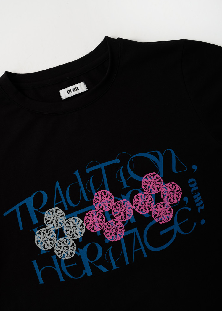 - This is an artwork print t-shirt that layers lettering graphics containing OUWR's identity and signature pattern P3 [GULEUM GGOT].