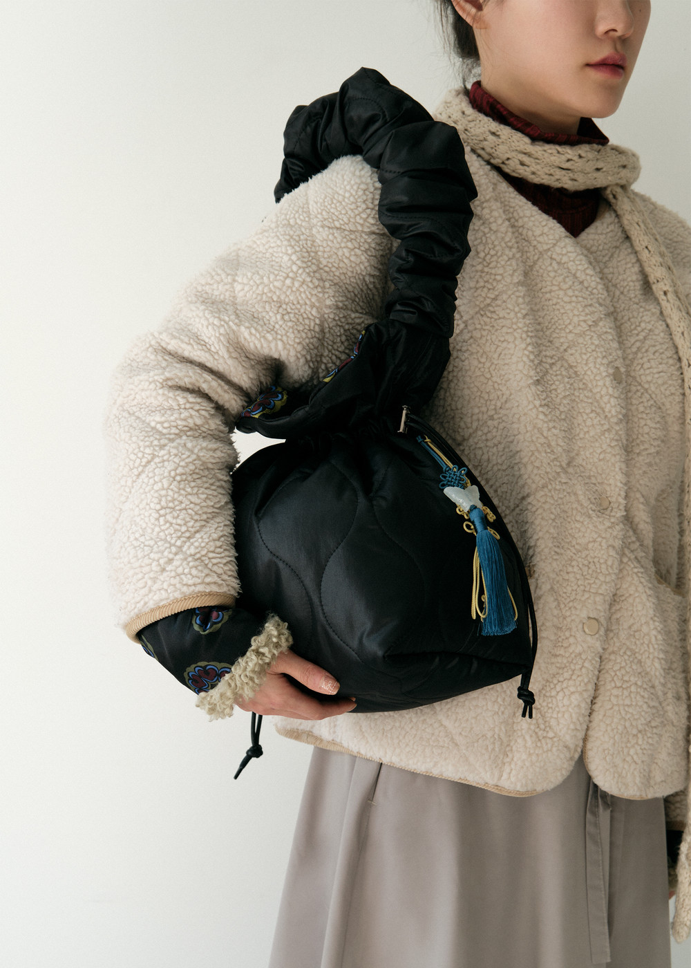 - The scrunchie can be styled alone or tied as a daengi knot. The daengi can be worn as a scarf around the neck, used to tie a bag strap, and or styled in various ways.