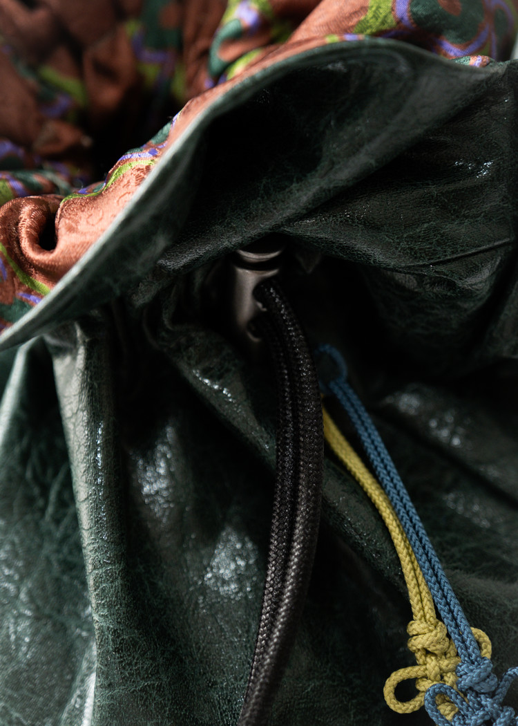 - Crafted from luxurious leather with a subtle sheen, this mini bag highlights the intricate pattern lining inside.