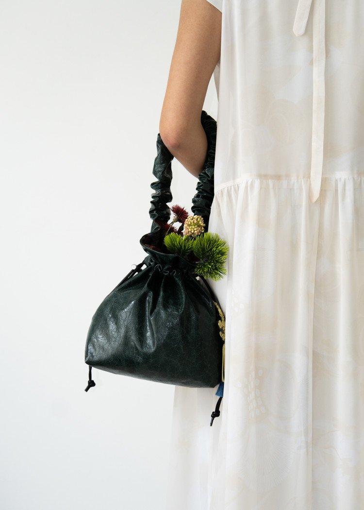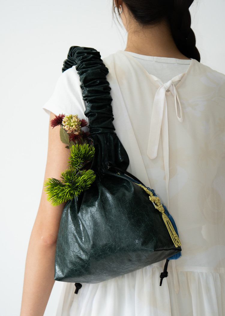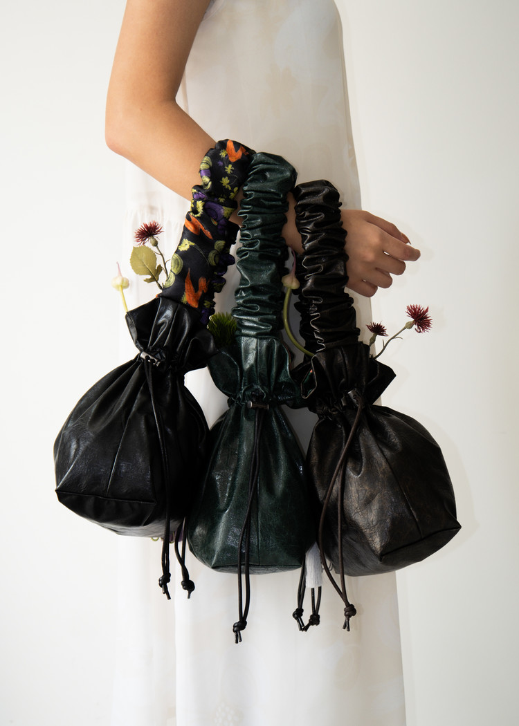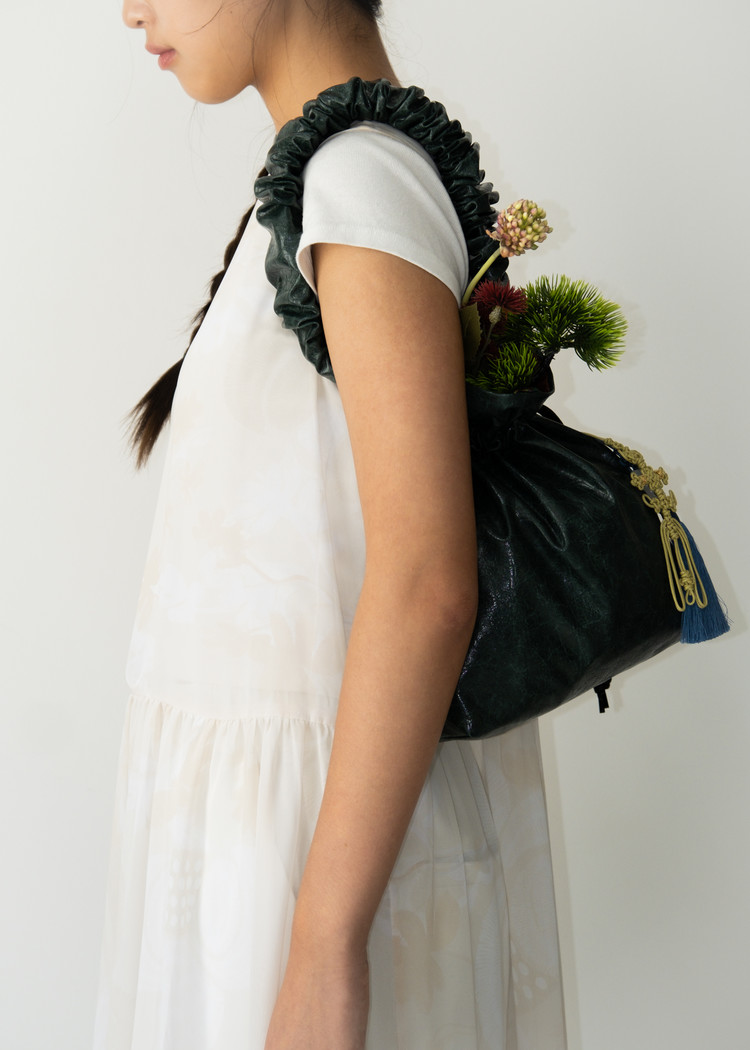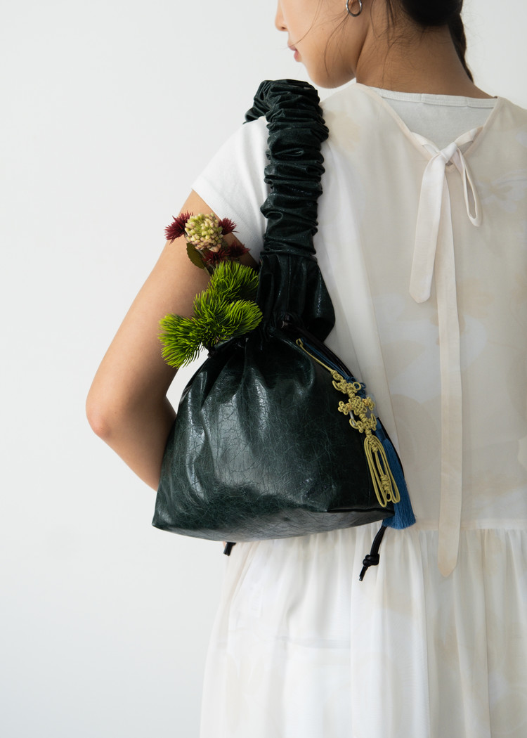 - The traditional bok-joo-mon-ey shape is enhanced with a shirred handle, adding comfort and a stylish touch.