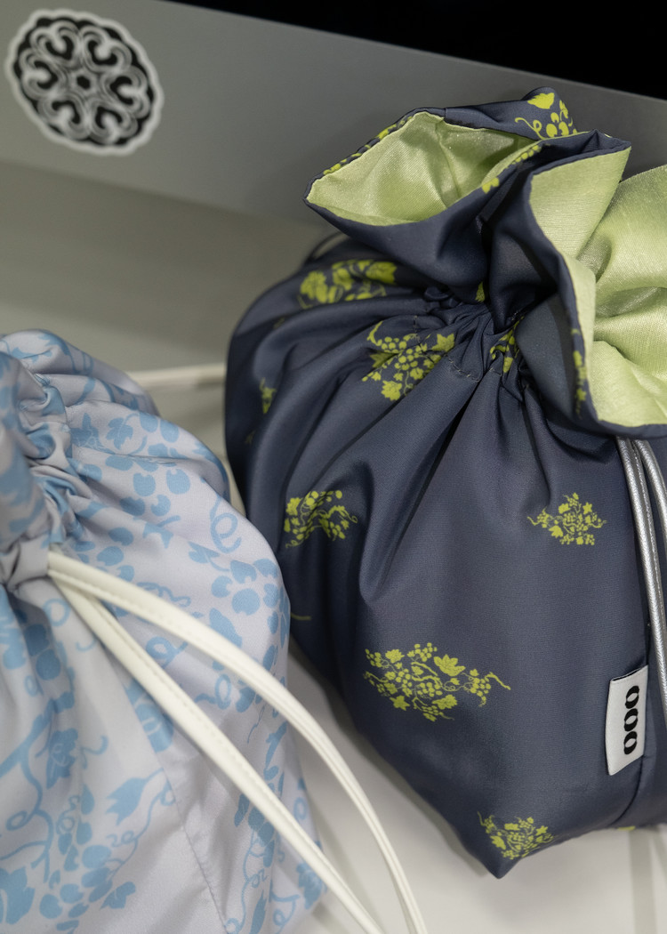 - Inspired by the traditional bok-joo-mon-ey, a lucky pouch worn to attract good fortune, the Bok Pouch is designed with OUWR P17 PODO FAMILY pattern.