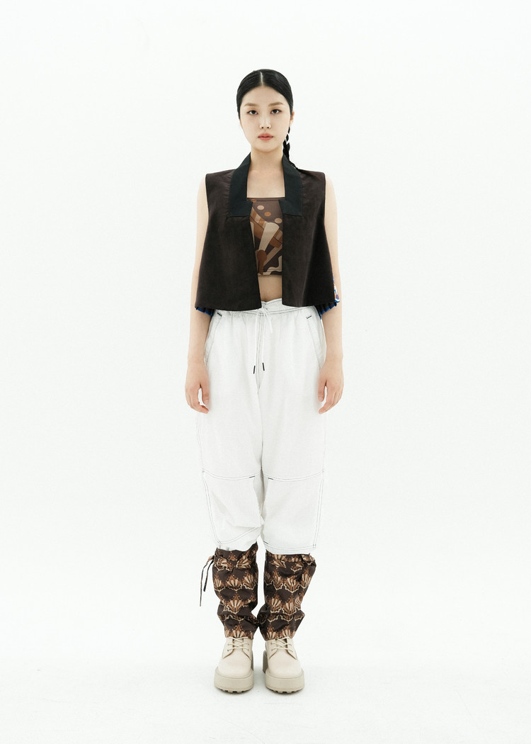 - [CHEOMA] pattern is a reinterpretation of the architectural term Cheoma (檐牙), referring to the lower part of the tiled roof in traditional Korean architecture, where the rafters extend beyond the columns.